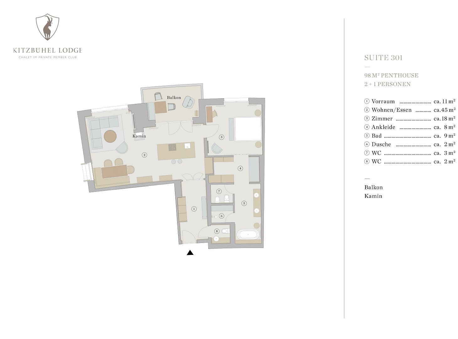 Grundriss Penthouse Chalet 301 -> für 2 + 1 Personen