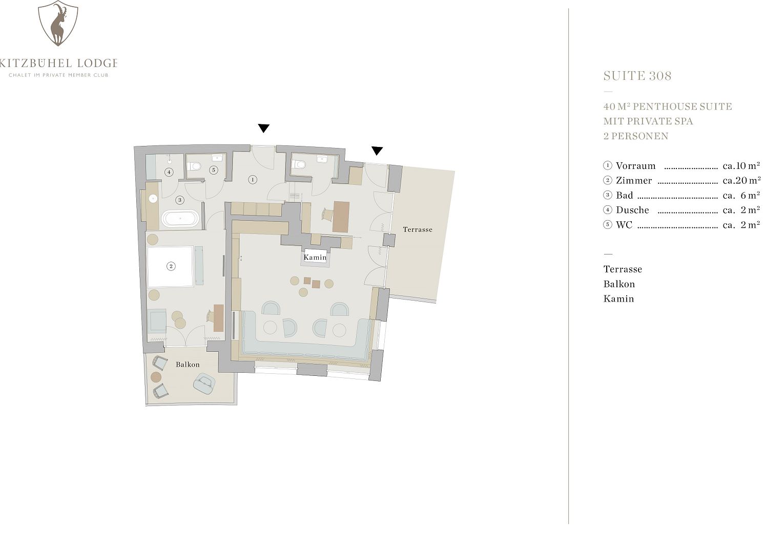 Grundriss Penthouse Chalet 308 -> für 2 Personen
